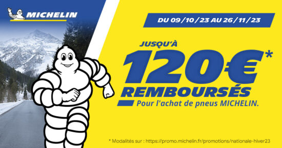 Du 10 juin au 28 juillet 2024, jusqu’à 120€ remboursés pour l’achat de pneus Michelin Eté, Hiver ou CrossClimate. Remboursement […]